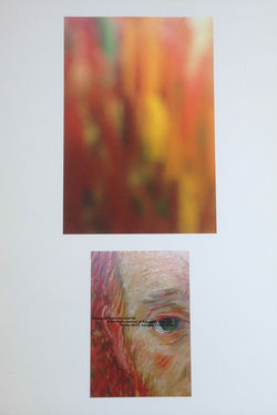 Both images are the original artwork, but in the close ups this is not obvious; the close ups present pure aesthetic values of colours and forms. The comparison of those to the images of the recognisable artworks, creates a dialogue of ambitious perception.